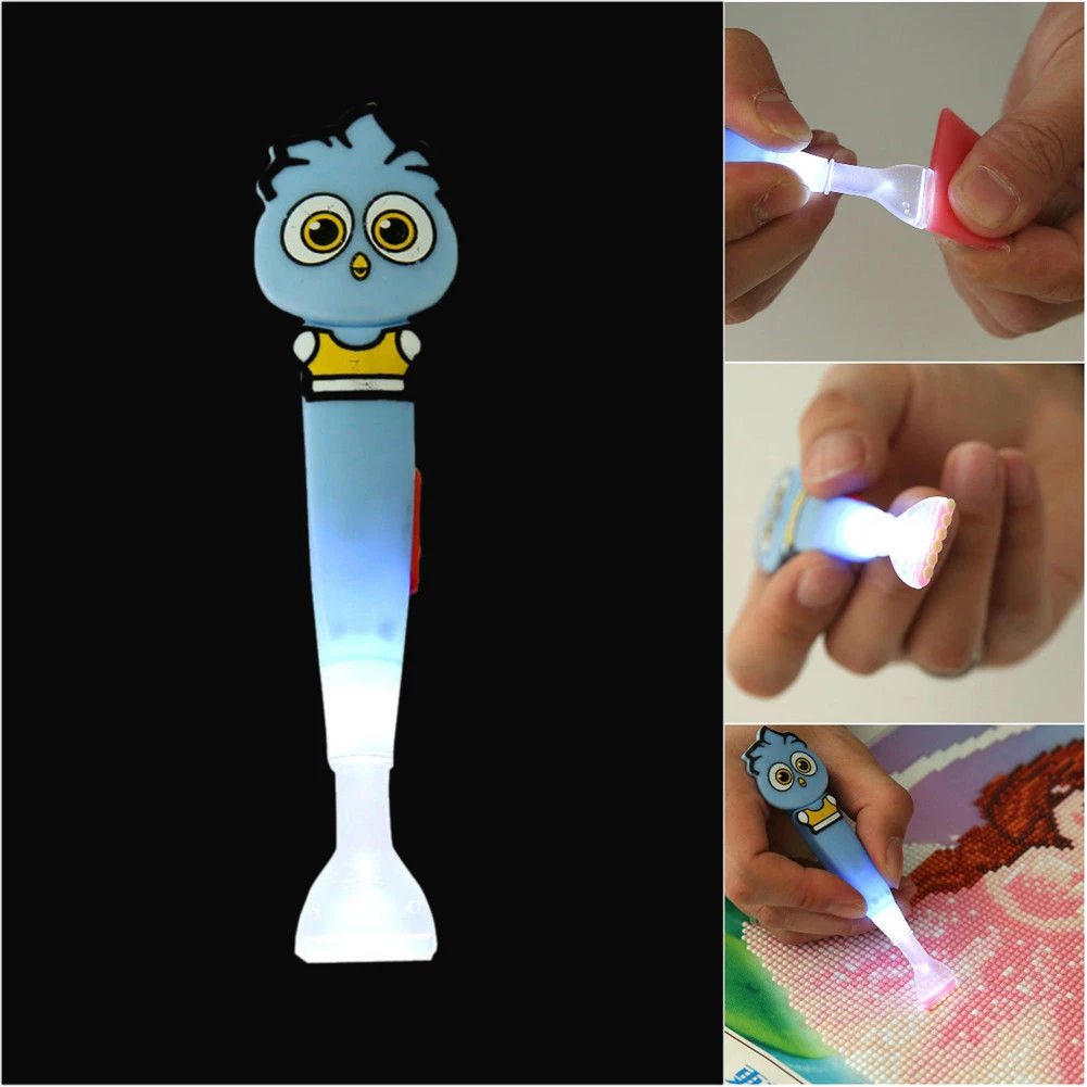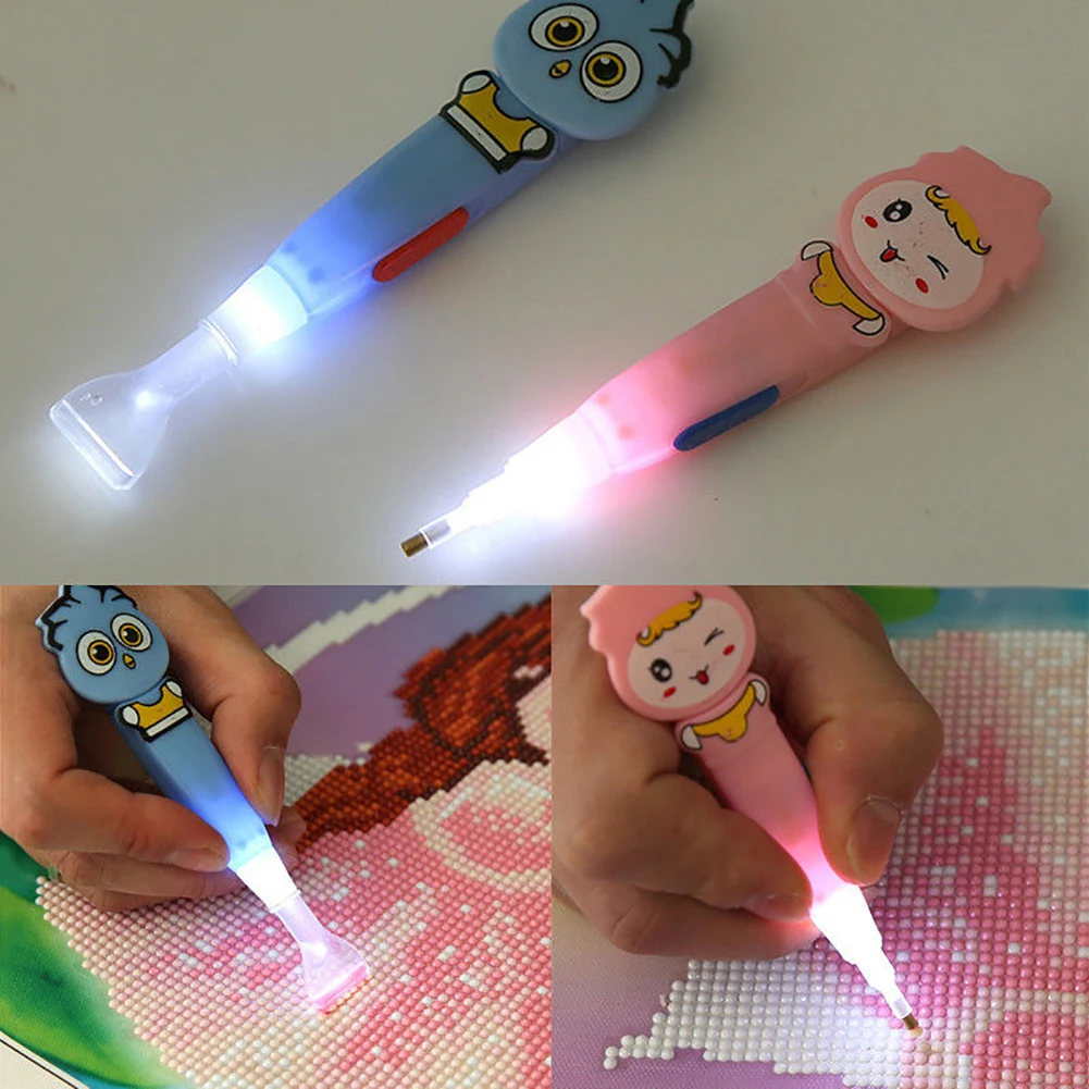 Caneta pegajosa leve LED desenho animado para DIY 5D diamante bordado pintura ponto cruz