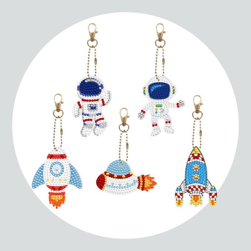 Chaveiros Pintura Terapêutica com Diamantes - Astronauta - Kit com 5