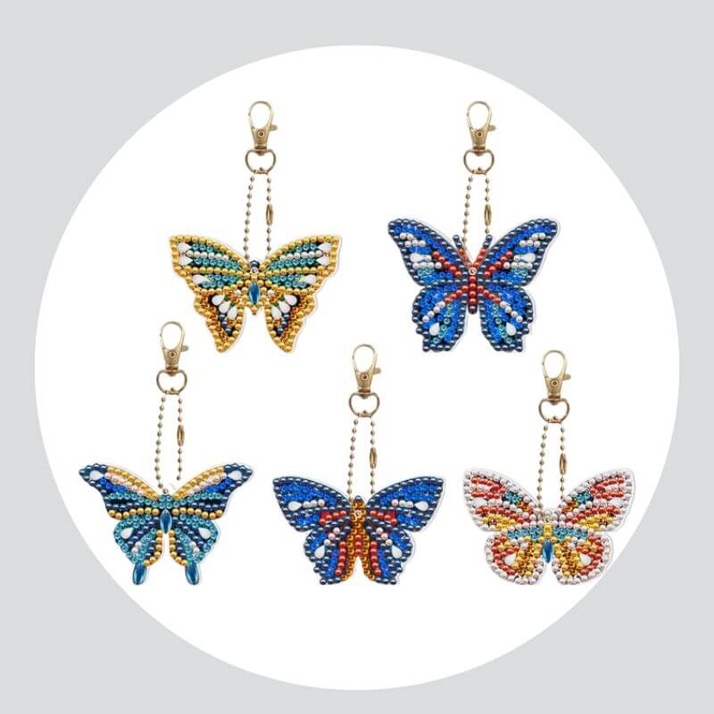 Chaveiros Pintura Terapêutica com Diamantes - Borboletas B - Kit com 5