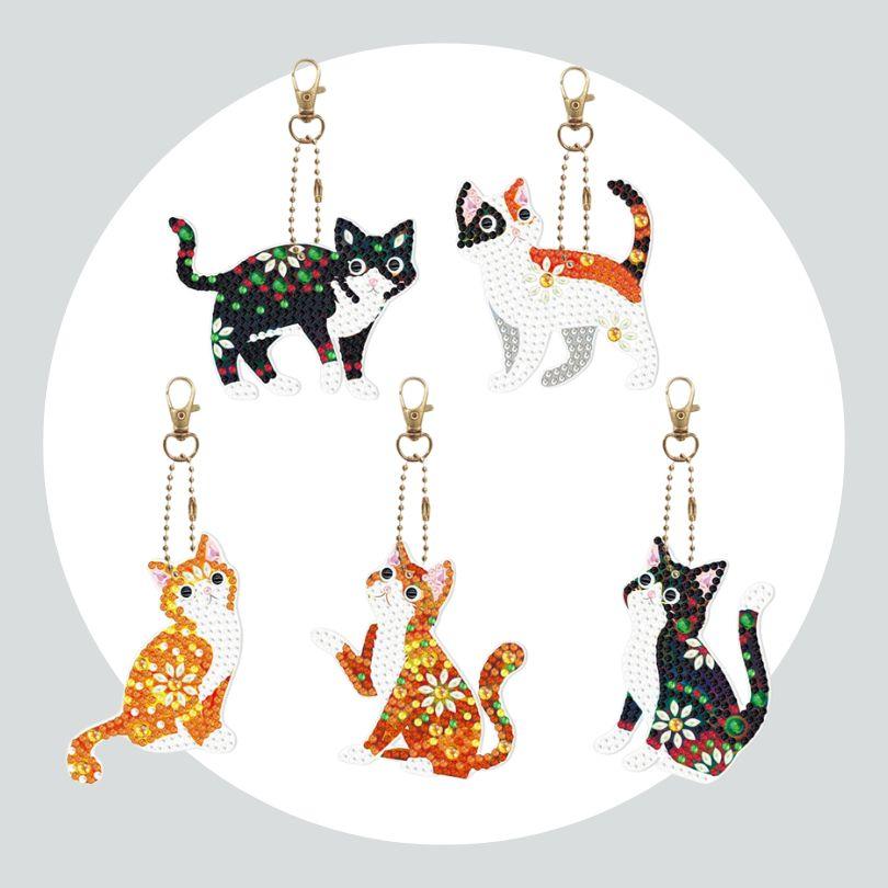 Chaveiros Pintura Terapêutica com Diamantes - Gatinhos - Kit com 5