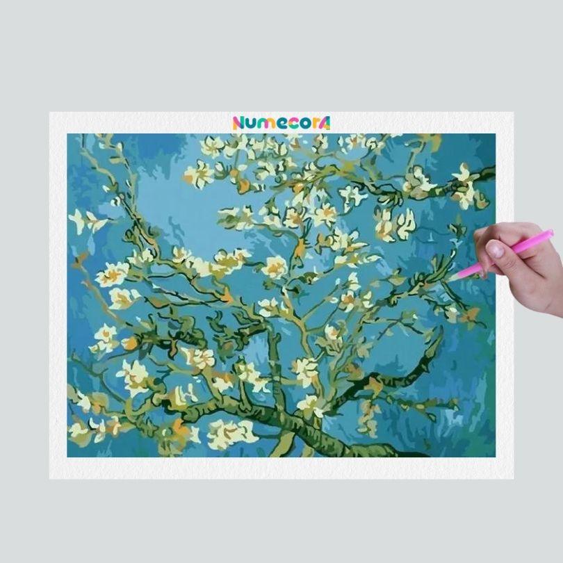 Pintura Terapêutica com Diamantes - Amendoeira - Van Gogh - Tela 100% Preenchida