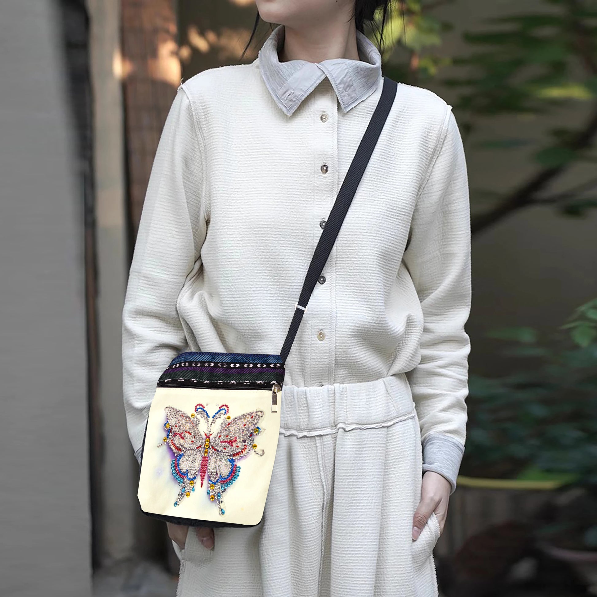 Pintura Terapêutica com Diamantes - Bolsa com Alça - Borboleta - Tela 100% Preenchida