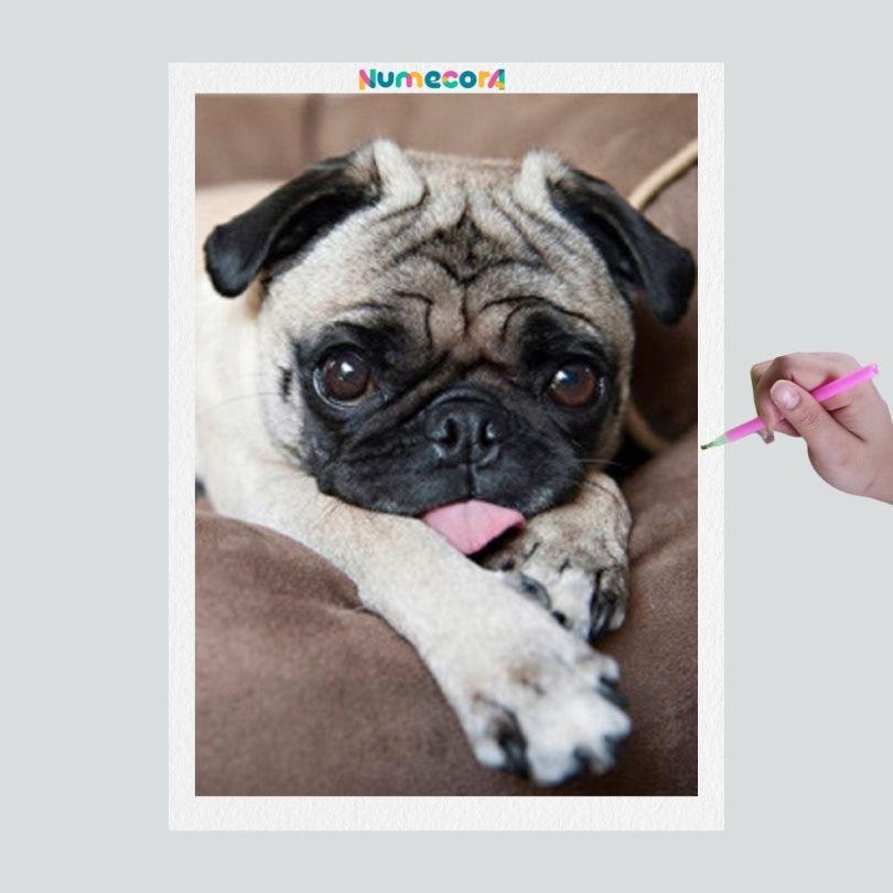 Pintura Terapêutica com Diamantes - Dog Pug - Tela 100% Preenchida