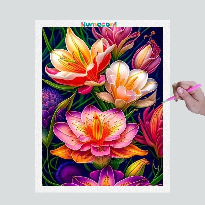Pintura Terapêutica com Diamantes - Flores Luminosas - Tela 100% Preenchida