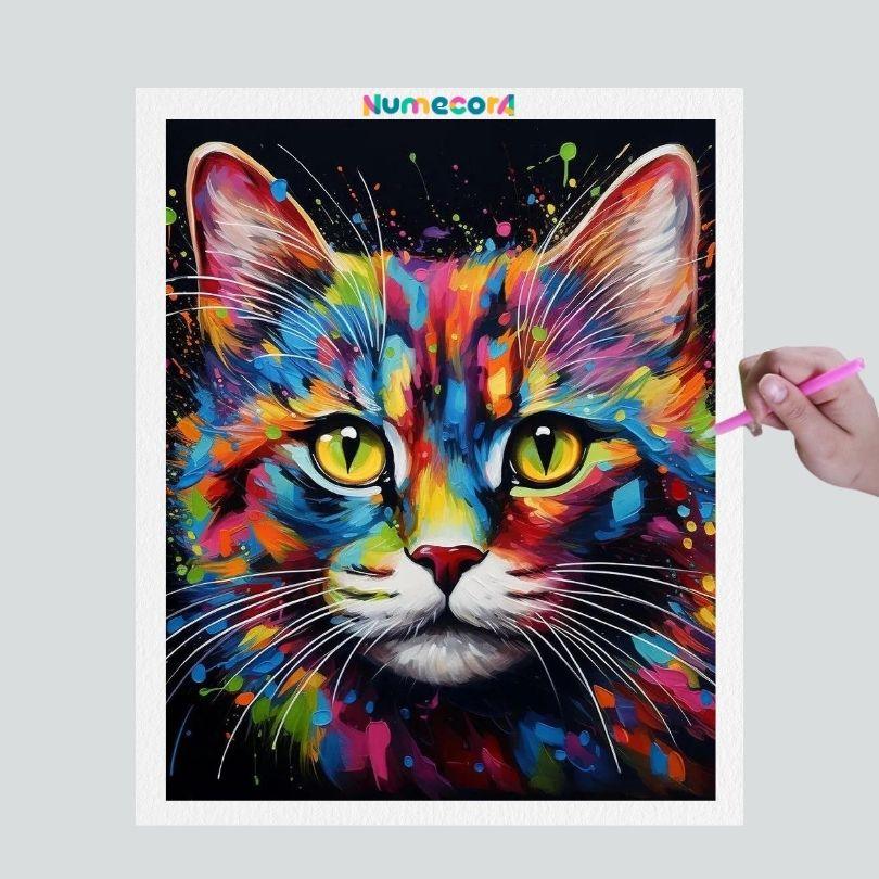 Pintura Terapêutica com Diamantes - Gato Artístico - Tela 100% Preenchida