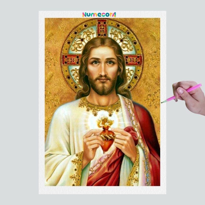 Pintura Terapêutica com Diamantes - Jesus Cristo - Tela 100% Preenchida