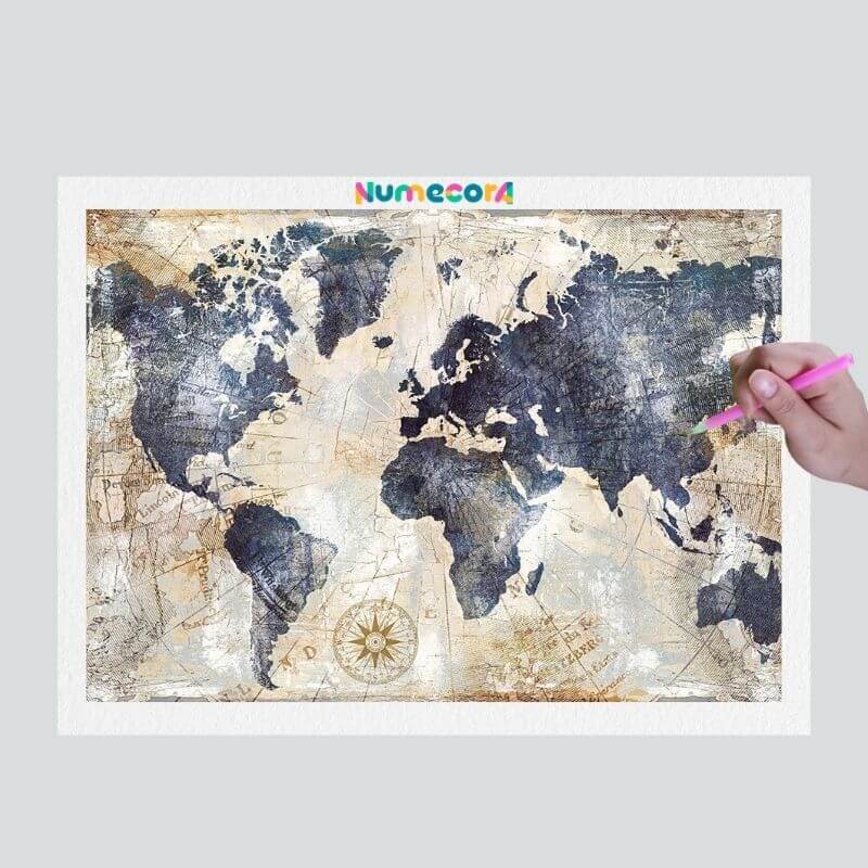 Pintura Terapêutica com Diamantes - Mapa Mundi