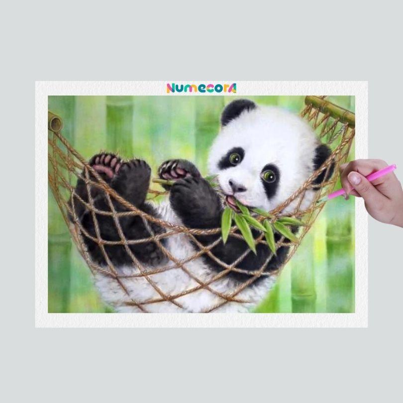 Pintura Terapêutica com Diamantes - Panda na Rede - Tela 100% Preenchida