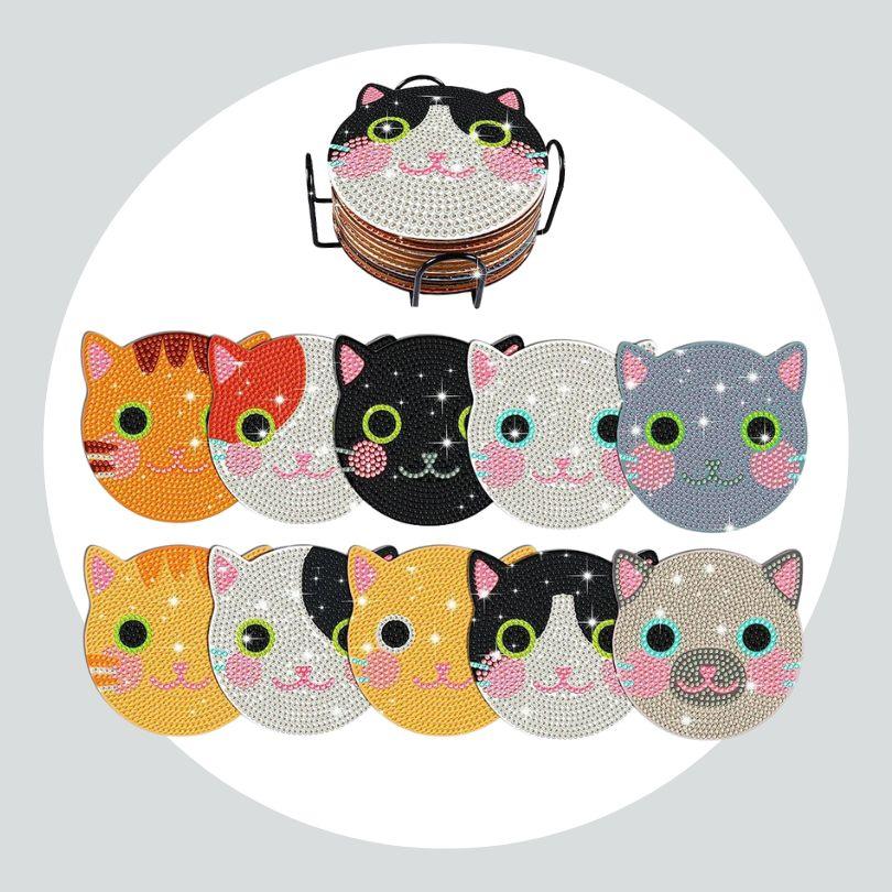 Pintura Terapêutica com Diamantes - Porta Copos (10 Unidades) - Gatinhos