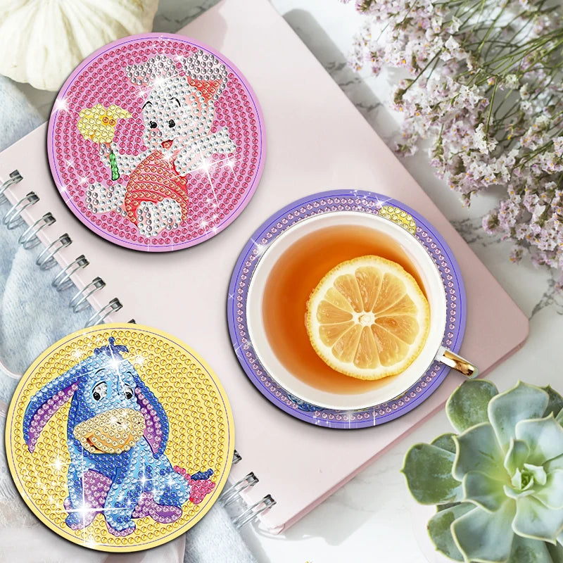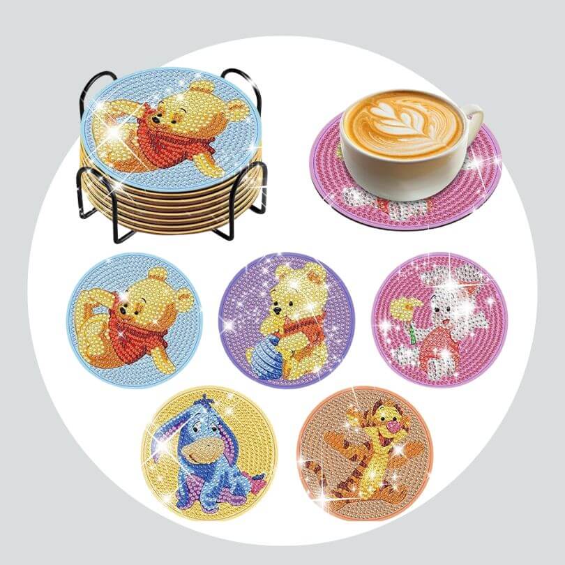 Pintura Terapêutica com Diamantes - Porta Copos (5 Unidades) - Ursinho Pooh