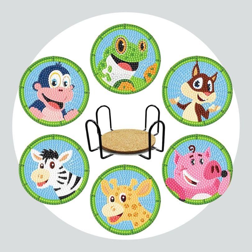 Pintura Terapêutica com Diamantes - Porta Copos (6 unidades) - Animais