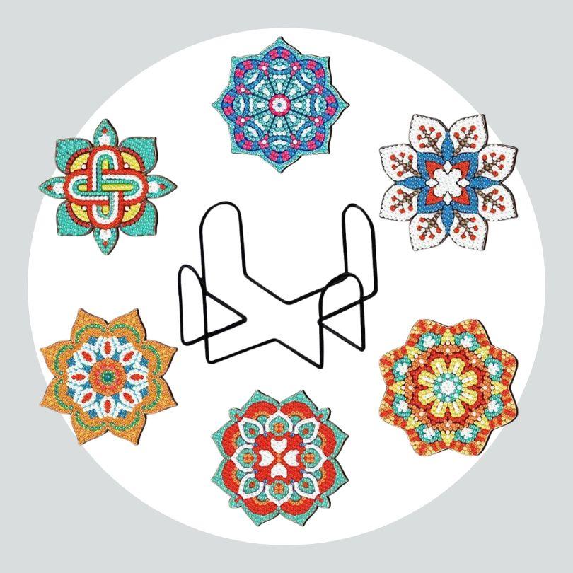 Pintura Terapêutica com Diamantes - Porta Copos (6 unidades) -Flores Mandalas