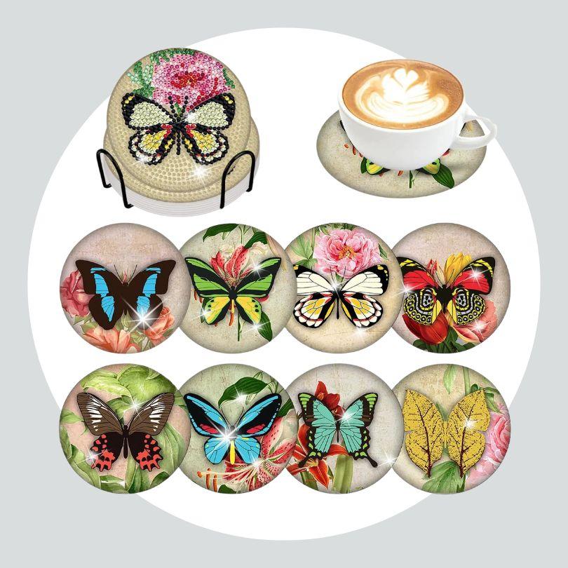 Pintura Terapêutica com Diamantes - Porta Copos (8 unidades) - Borboletas