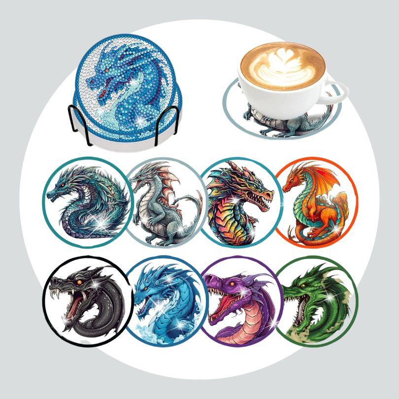Pintura Terapêutica com Diamantes - Porta Copos (8 unidades) - Dragões