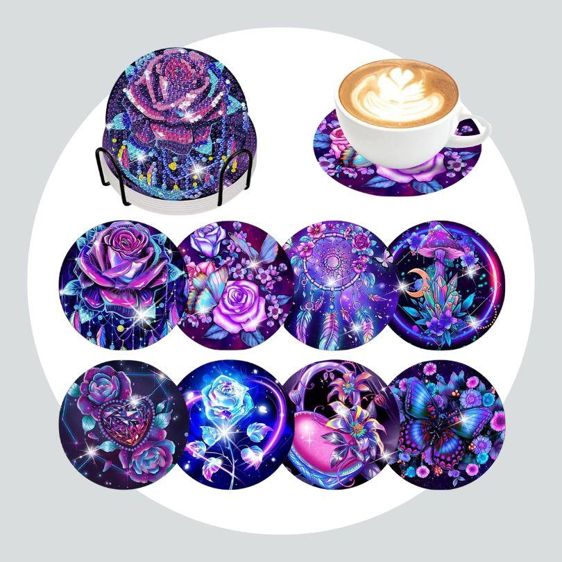 Pintura Terapêutica com Diamantes - Porta Copos (8 unidades) - Flores Psicodélicas