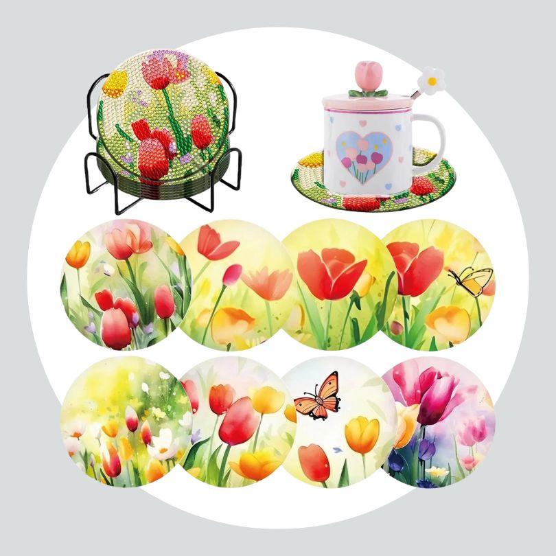 Pintura Terapêutica com Diamantes - Porta Copos (8 unidades) - Tulipas