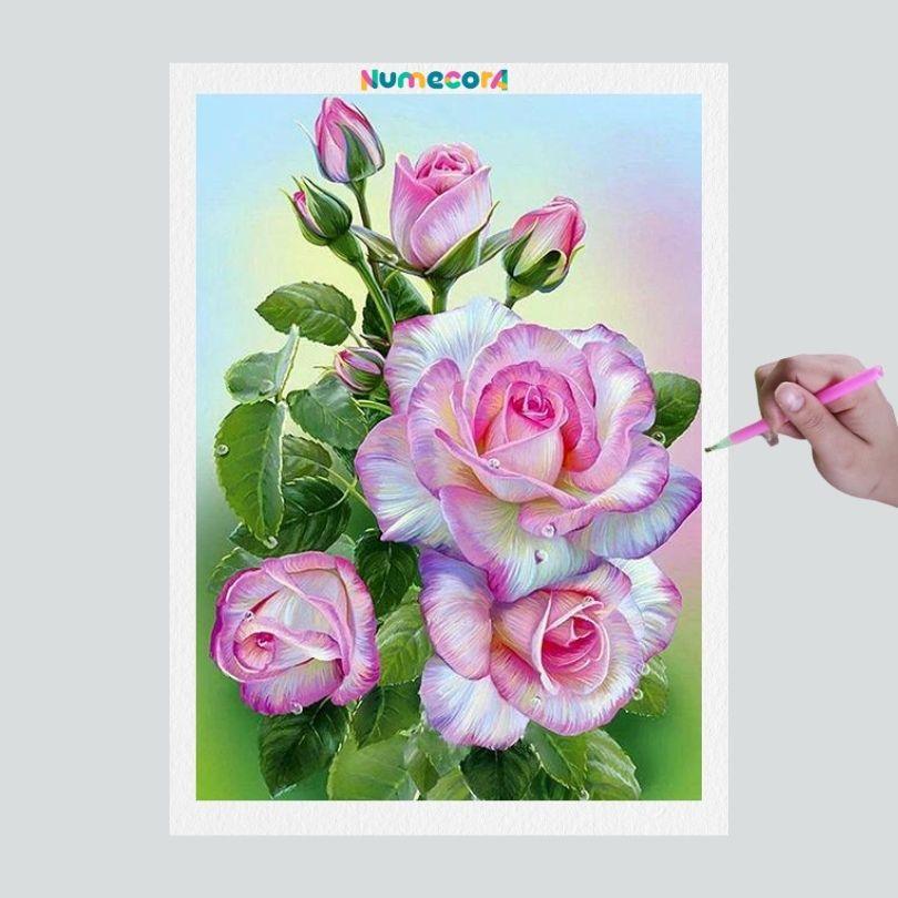 Pintura Terapêutica com Diamantes - Rosa Bela - Tela 100% Preenchida