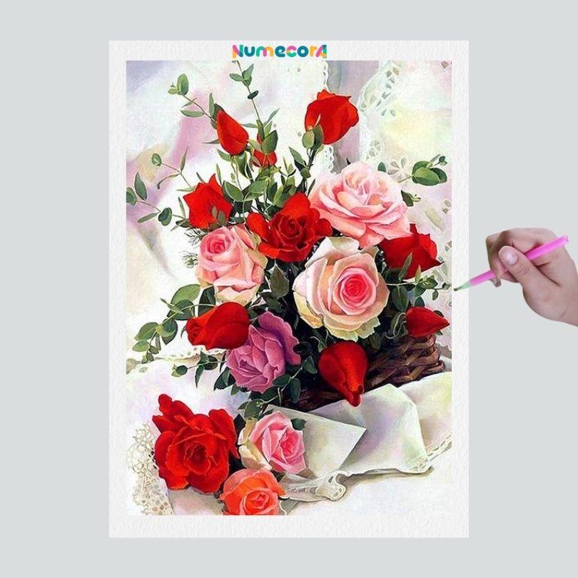 Pintura Terapêutica com Diamantes - Rosas diversas - Tela 100% Preenchida