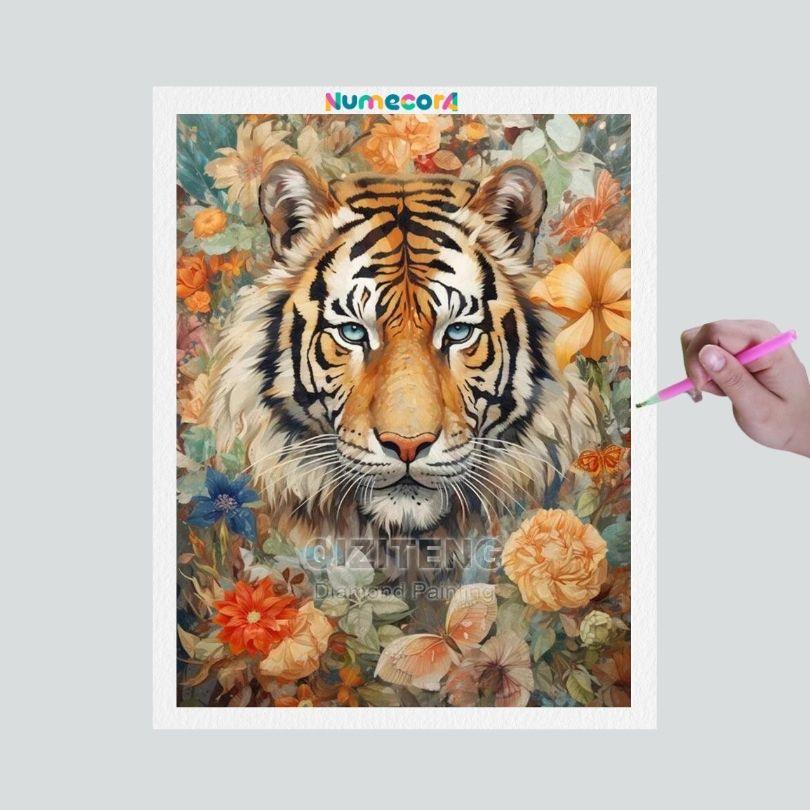 Pintura Terapêutica com Diamantes - Tigre - Tela 100% Preenchida
