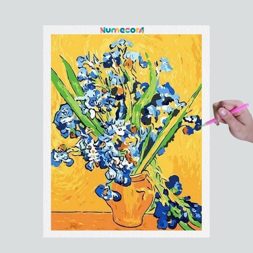 Pintura Terapêutica com Diamantes - Vaso com Lirios - Van Gogh - Tela 100% Preenchida