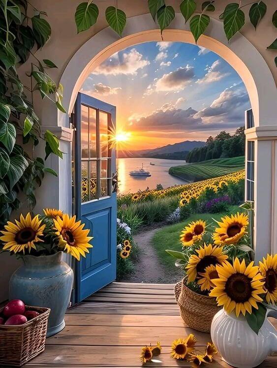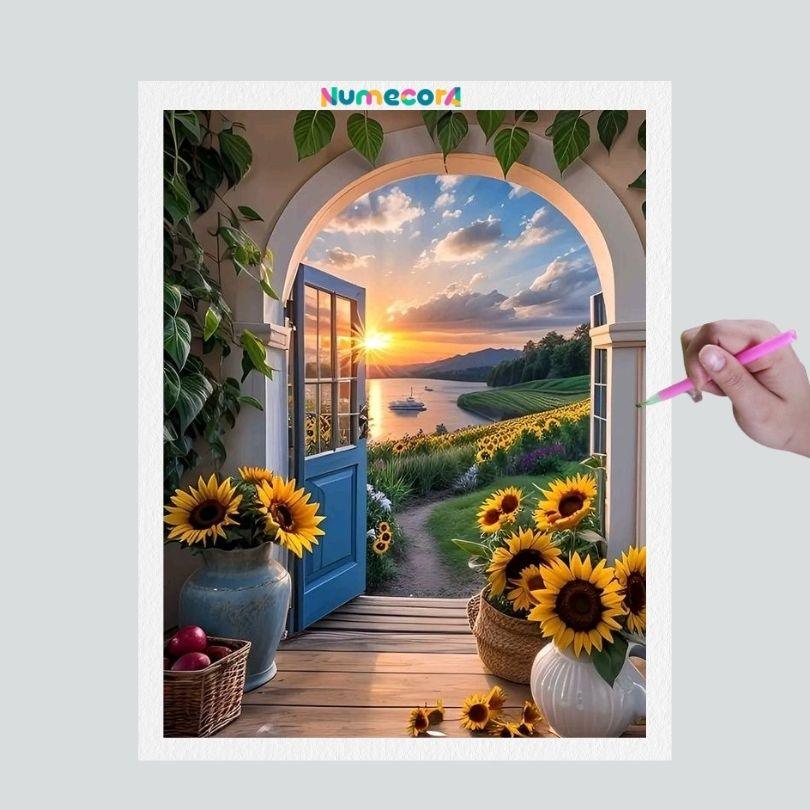 Pintura Terapêutica com Diamantes - Vista para o Por do Sol - Tela 100% Preenchida
