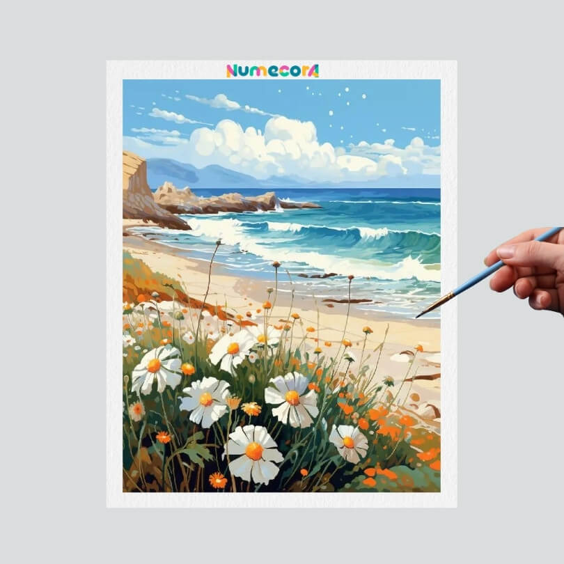 Pintura Terapêutica Numerada - Praia e Margaridas