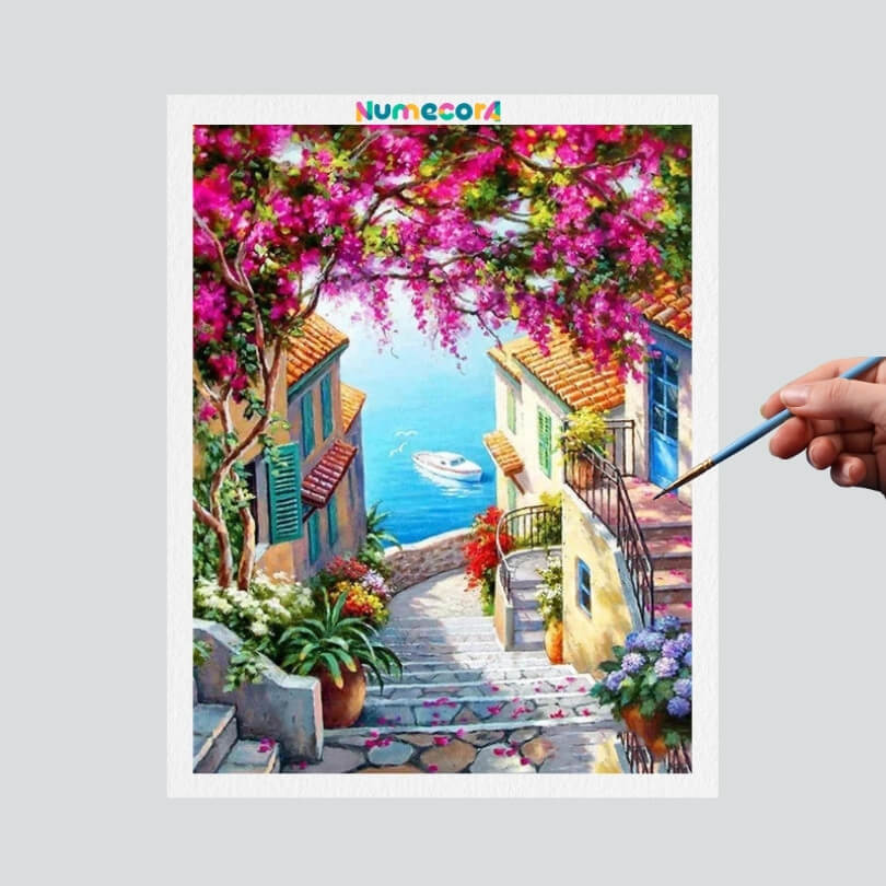 Pintura Terapêutica Numerada - Ruas de Encanto à Beira Mar